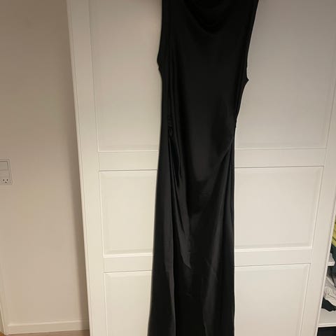 Lang mesh kjole fra Zara i asymmetrisk design med ét ærme og rynkede detaljer langs kroppen