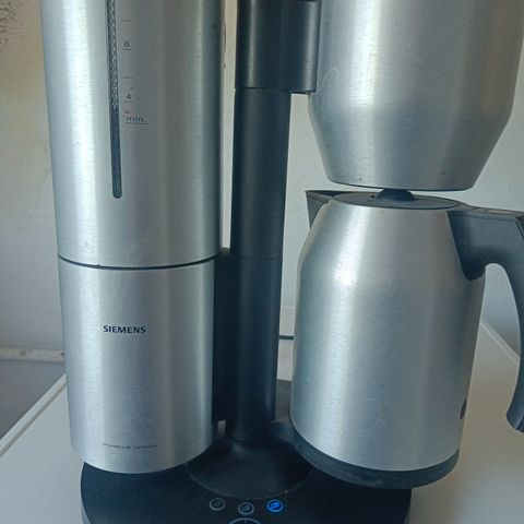Siemens Porsche Design Kaffemaskine i Rustfri rustfrit stål med aftagelige vandbeholder der gør påfyldning af vand nemt. Brygger direkte i termokanden.