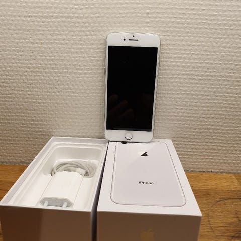 Rigtig flot iPhone 8, 64GB,guld rosa, ingen synlige brugsspor. Original æske, original læder cover rosa samt 2 ekstra covers medfølger