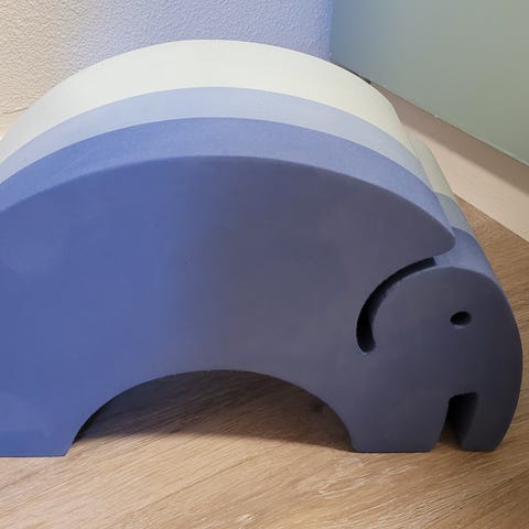 STOR Bobles elefant er fremstillet i blødt skummateriale i lilla og mørkelilla farver.