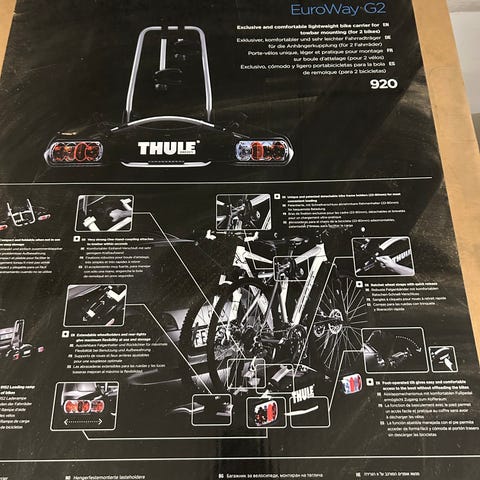Euroway G2 2 Bikes fra Thule er en kompakt, let cykelholder til montering på anhængertrækket (til 2 cykler). Designet til nem montering på bilens anhængertræk. Fremstillet i robust materiale med integrerede lygter for øget sikkerhed under kørsel.