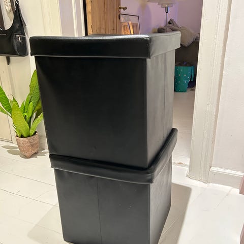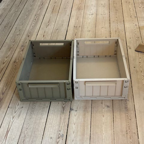2 helt nye Leitz MyBox opbevaringskasser i hvid farve med målene 18l, 32 x 20x 39 cm. Kasserne er fremstillet i plast og har låg. Velegnet til opbevaring og organisering af forskellige genstande.