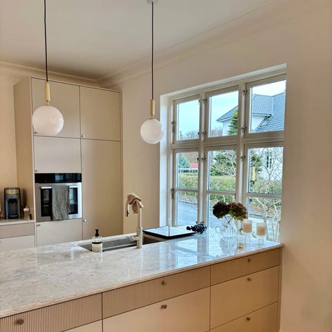 Flot Nuura loftslampe sælges. Rizzatto serien er tidsløst designet med hjælp af de organiske former, det mundblæste opale glas skaber.