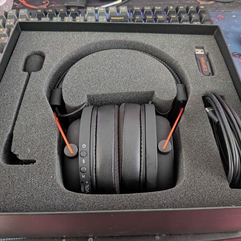 Cepter Air trådløst gaming headset med US-dongle til trådløs forbindelse.