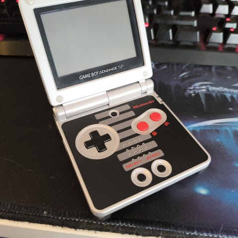 Nintendo Game Boy Advance SP NES edition med 3d printet konsolstander