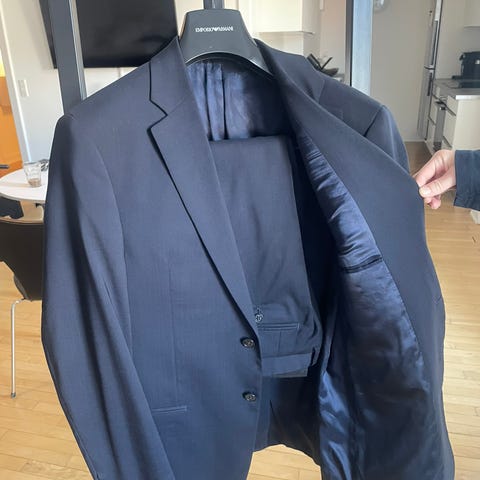 Armani jakke, uld og silke. Str. 50, topforarbejning. Mål fremgår af fotos.