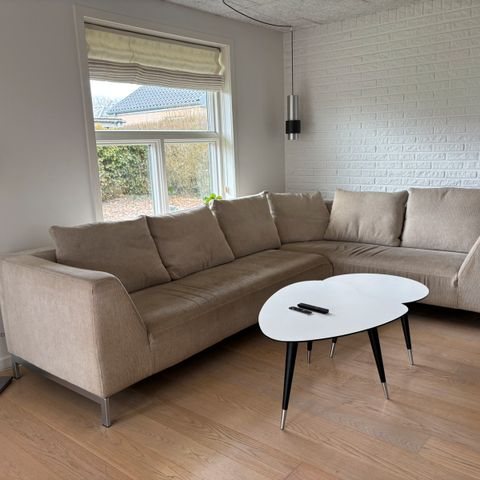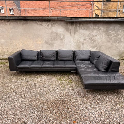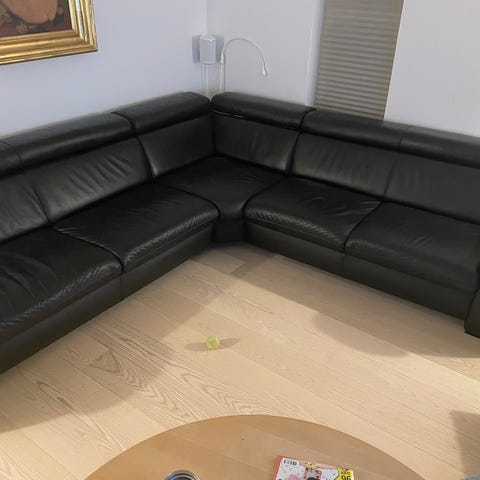 Hjørnesofa + lænestol i brun læder sælges. Sofa gruppen er i god stand.