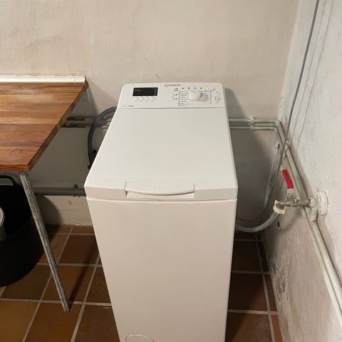 Jeg sælger en Indesit BTW S72200 EU/N topbetjent vaskemaskine, som er købt i november 2022.