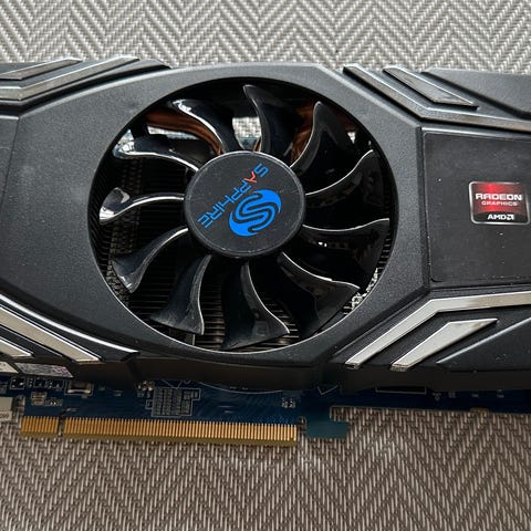 Sapphire grafikkort med dual fan kølesystem, PCIe interface og flere videoudgangsporte inklusive HDMI og DVI. Kortet er designet til brug i stationære computere til grafisk behandling og gaming.