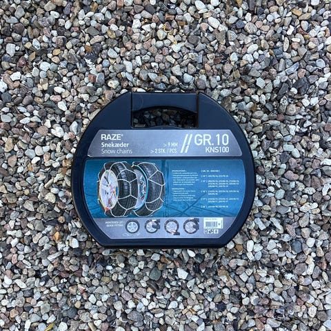 Branford Sneekæder til forbedret vejgreb på sne og is. Leveres i en blå opbevaringskasse.