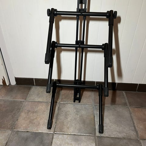 Italienske Manfrotto producerede dette fremragende stativ. Skridsikre holdere, og kan huse mange synths.