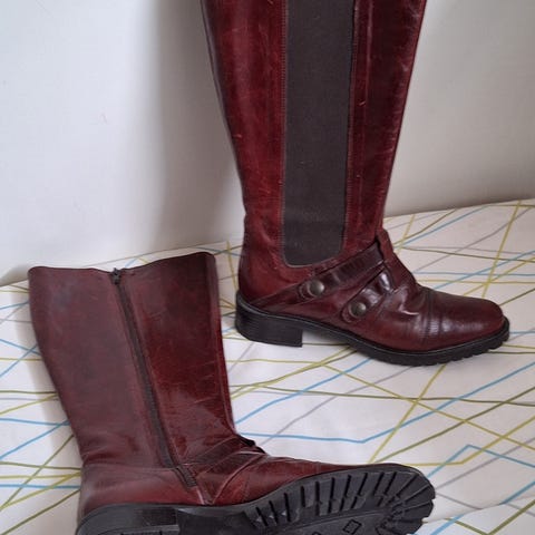 Pæn og velholdt støvle i læder og sort rågummisål. Fejler ikke noget, men jeg går ikke i høje hæle længere.
