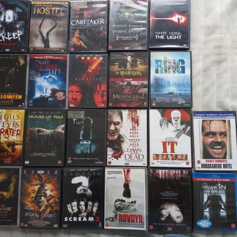 Samling af forskellige DVD og Blu-ray film i forskellige genrer. Indeholder titler som Die Hard, The Exorcist, Saw-serien, Jaws 3, Annabelle, It og The Conjuring. Filmene er i standard DVD og Blu-ray format.