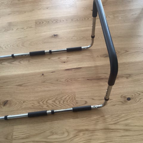 Støttegreb og sengehest med gulvstøtte og justerbar. Nem at placere under madrassen.