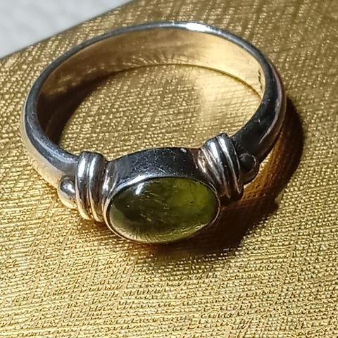 Lille størrelse sølvring af Gert Thyssell for Gussi fra 1969 med bjergkrystal str. 47,5.
