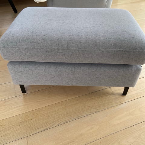 I mørkeblå stof, lille puf kan gemmes i den store