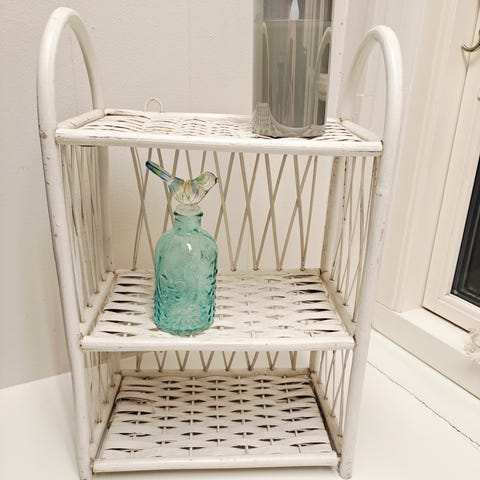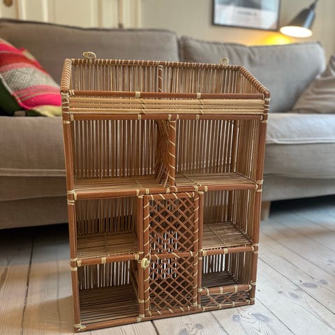 Vintage skab/ hylde i bambus, med to hylder og lille rum med dør nederst.