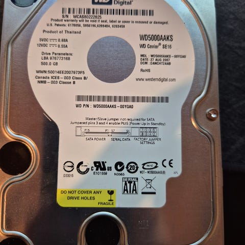 Western Digital WD20EADS harddisk med en kapacitet på 2TB. Harddisken anvender SATA interface og har en 32MB cache. Modelnummer WD20EADS-42M6B0. WD Caviar Green