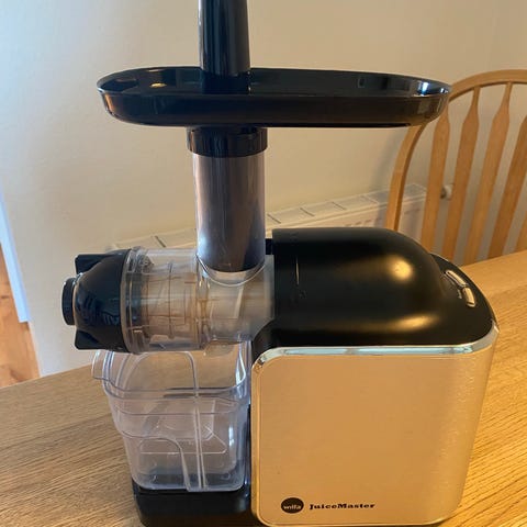 Meget velholdt, Sandstrøm slowjuicer , der presser godt også gulerødder/ hårde grøntsager. Perfekt til mindre husstand / begyndere inden der købes store dyre maskiner.