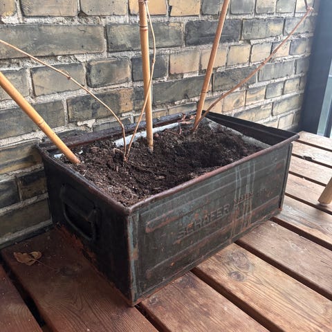 Metalkasser i sort med patina, der kan bruges til opbevaring og pynt.