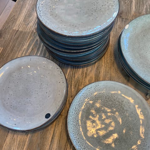 House Doctor tallerken i keramisk materiale med blå farve. Tallerkenen har en rund form og et håndlavet udseende med små prikker og ujævnheder i glasuret, hvilket giver et unikt og rustikt præg.