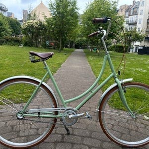 Helt nyinstandsat, nymalede dele, lakeret stel (et lille hak i lakken). 3 gear, stor kurv, støtteben, lås, klokke. Lækker Brooks lædersadel. Sælger fordi den er lidt lille til mig (175 cm høj). Perfekt cykel