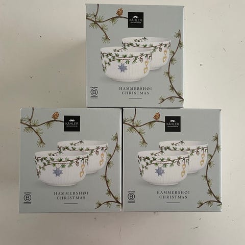 Kähler Hammershøi Christmas skål med julemotiv. Skålen er dekoreret med grangrene, stjerner og en nøddeknækkerfigur. Designet til brug i juletiden. 23 cm. Kun brugt 1 enkelt gang