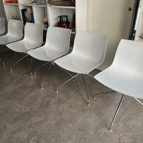 Spisebordsstole, 4 stk, hvide, ben af egetræ, meget fin stand, Lievore, Altherr og Molina, nypris 10000.-