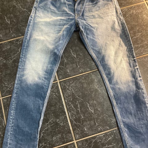 Kun brugt 1-2 gange. Str. W34/L32. De er ret store i størrelsen, så passer nok bedst til en livvidde på W36. Nypris 750 kr. Prisen er fast.