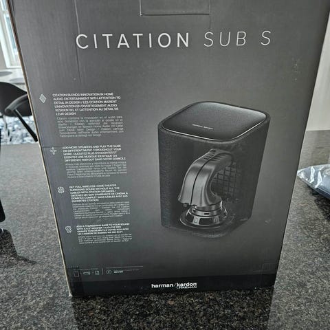 Sindssygt Harman Kardon subwoofer anlæg med to satellithøjttalere med gennemsigtigt design. Systemet har kablet tilslutning og er velegnet til brug med forskellige lydkilder. Virkelig god lyd, men får det bare ikke brugt, da det fylder. Kun nogle enkelte mærker efter at have ligget på loftet (se røde markeringer på det sidste billede).