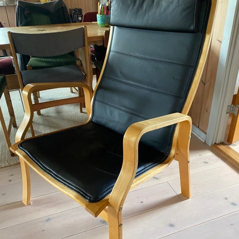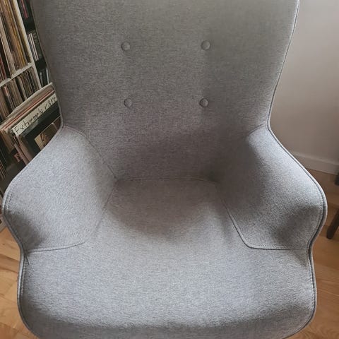 Pæn stol med god sidde komfort og tilhørende skammel. Velegnet til læsehjørne hjemme eller i sommerhus.