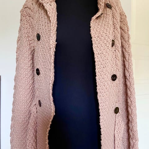 Lækker tyk sweater fra Rabens saloner med mange fine detaljer. Er brugt flittigt, men har mange vinterdage igen.Farven er mørkeblå.