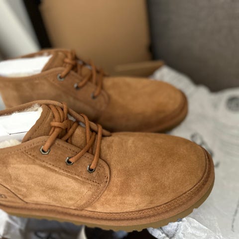 UGG støvler i størrelse 39 i brun farve. Støvlerne har en kombination af glat og ruskindsmateriale, læder med en lynlås på siden for nem lukning. Hælhøjde er moderat, og indersiden er foret med blødt materiale for komfort.