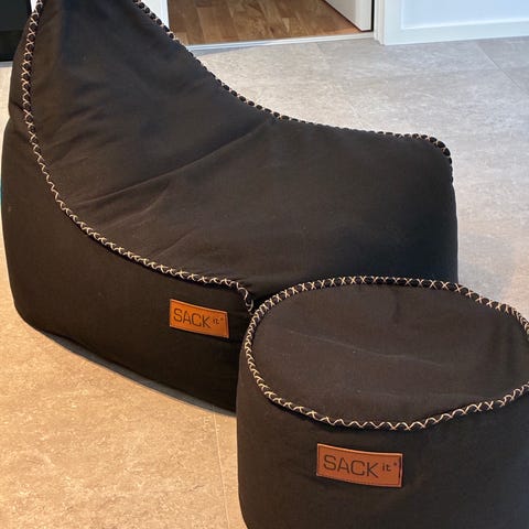 Sælger denne Sackit sækkestol med puf.
