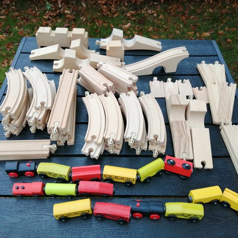 Komplett sett med IKEA Lillabo togskinner. 50 dele. Bygget med en gang.