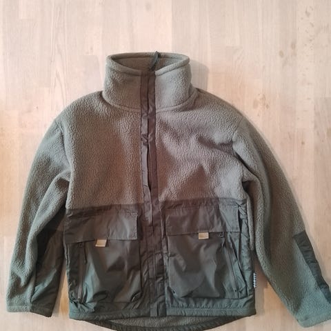 Denne mørkegrønne fleecejakke fra Molo er lavet i genanvendt polyester og har vind- og vandafvisende, slidstærke nylonpaneler på ærmer, ryg og frontlommer. Jakken har en høj krave og lynlåslukning på fronten.