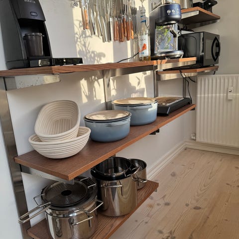 Gejst træskinne med metalbeslag, velegnet til ophængning og opbevaring. Magnetisk. Nypris 880 kr.