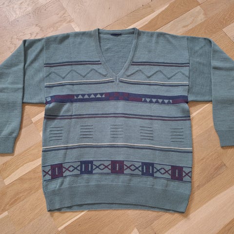Herretrøje i tynd uld/acryl-strik. Er modtaget som gave, men da jeg ikke tåler uld, er den aldrig brugt. Har en tilsvarende i lys brun (se fotos)