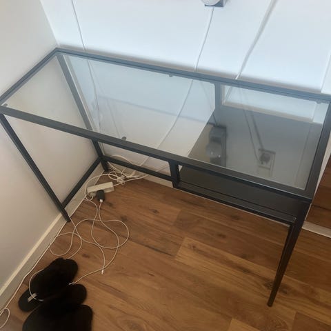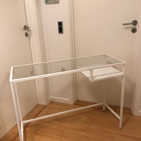 Sort vittsjö skrivebord med glasplade fra IKEA sælges.