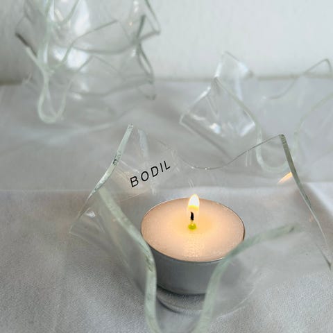 8 x glas lysestager til både fyrfadslys og alm. stearinlys (kan vendes), 10,- pr. stk.