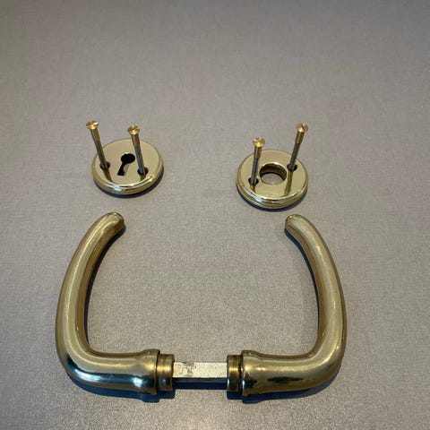 Foto 1: smukke håndtag i ben og med messing hals - model Svanemølle kr 450/sæt, kr 250/single