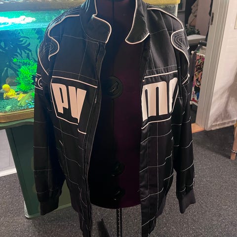 Puma Jakke i størrelse XL til mænd. Jakken er sort med hvide detaljer og er lavet af akryl materiale.