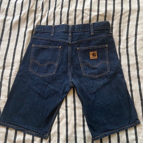 Carhartt Swell shorts i størrelse S til mænd, lavet af bomuld. Farven er blå. Shortsene har en klassisk pasform og er designet til komfort og bevægelsesfrihed.