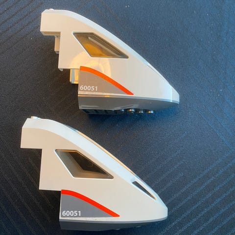 De to mørkeblå "riste" bagerst på lokomotivets tag mangler og er erstattet med en lidt længere bjælke i samme farve. Derudover er det komplet.