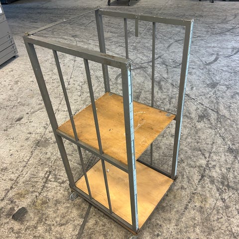 Trolley opbevaringsvogn med 3 niveauer i beige farve. Fremstillet i metal med hjul for nem mobilitet. Velegnet til opbevaring og organisering i hjemmet eller på kontoret.