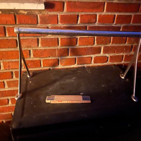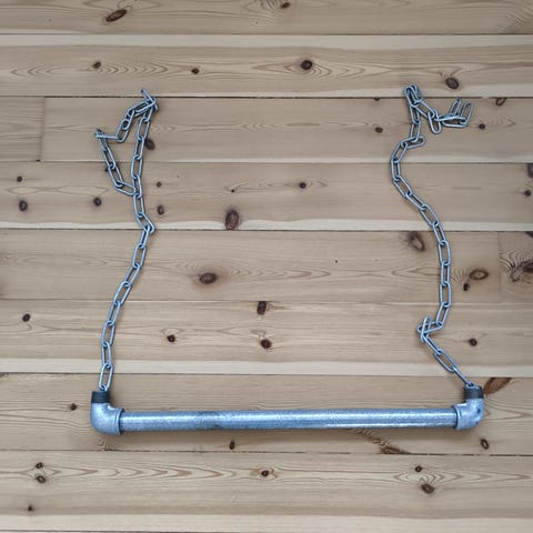 Som ny bøjlestang. Let at loftsmontere. Der med følger en kæde så man kan justerer højden. Meget solid jernstang