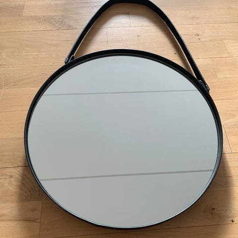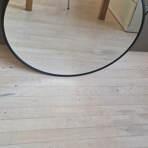 Spejlet kan både hænge på væggen (har det gjort hos mig tidligere), eller det kan stå på gulvet.