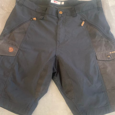Fjällräven blå shorts, herre, str. 48 i G-1000-stof. Muligvis den model der hed hed Grønlandsshorts.