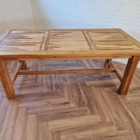 Bordet (uden tillægsplader) har en længde på 208 cm og en bredde på 90 cm.