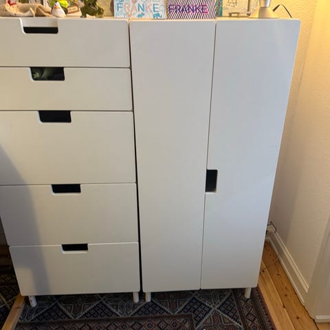 IKEA børne kommode med fire skuffer i grøn og lyserød.